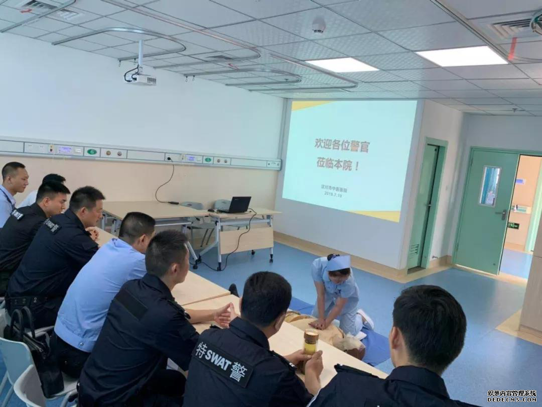 演练现场,护理人员利用道具,生动形象地演示了应急救护的规范动作,为大家讲解了展开救治时的注意事项及护理要点,公安干警们积极模仿练习,边听边练,很快掌握了动作要领。